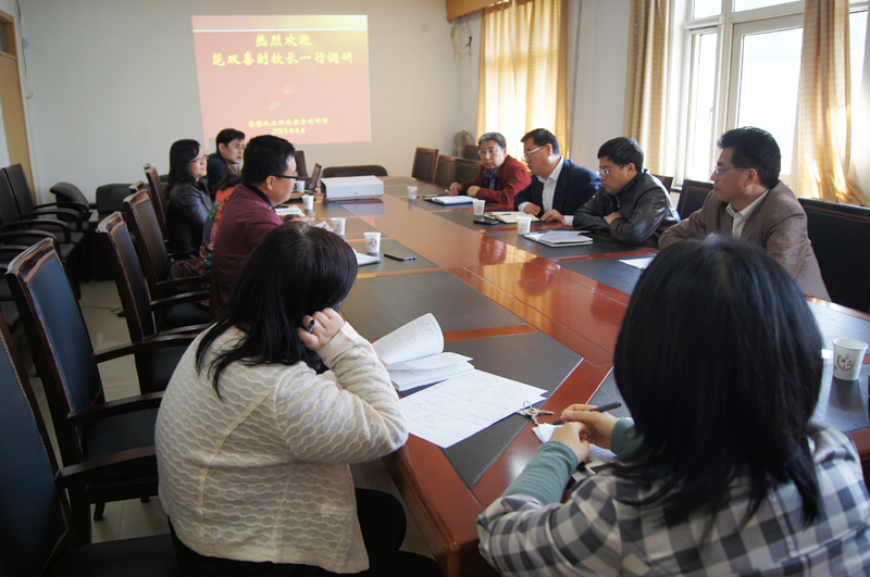 2015年4月20日,副董事长范双喜带领教务处处长张喜春、副处长安健、李奕松,教务处吴卫元老师等一行到思政部进行教学工作调研。思政部教研室主任、课程组组长、教学秘书参加了座谈会,思政部副主任范小强主持座谈会。