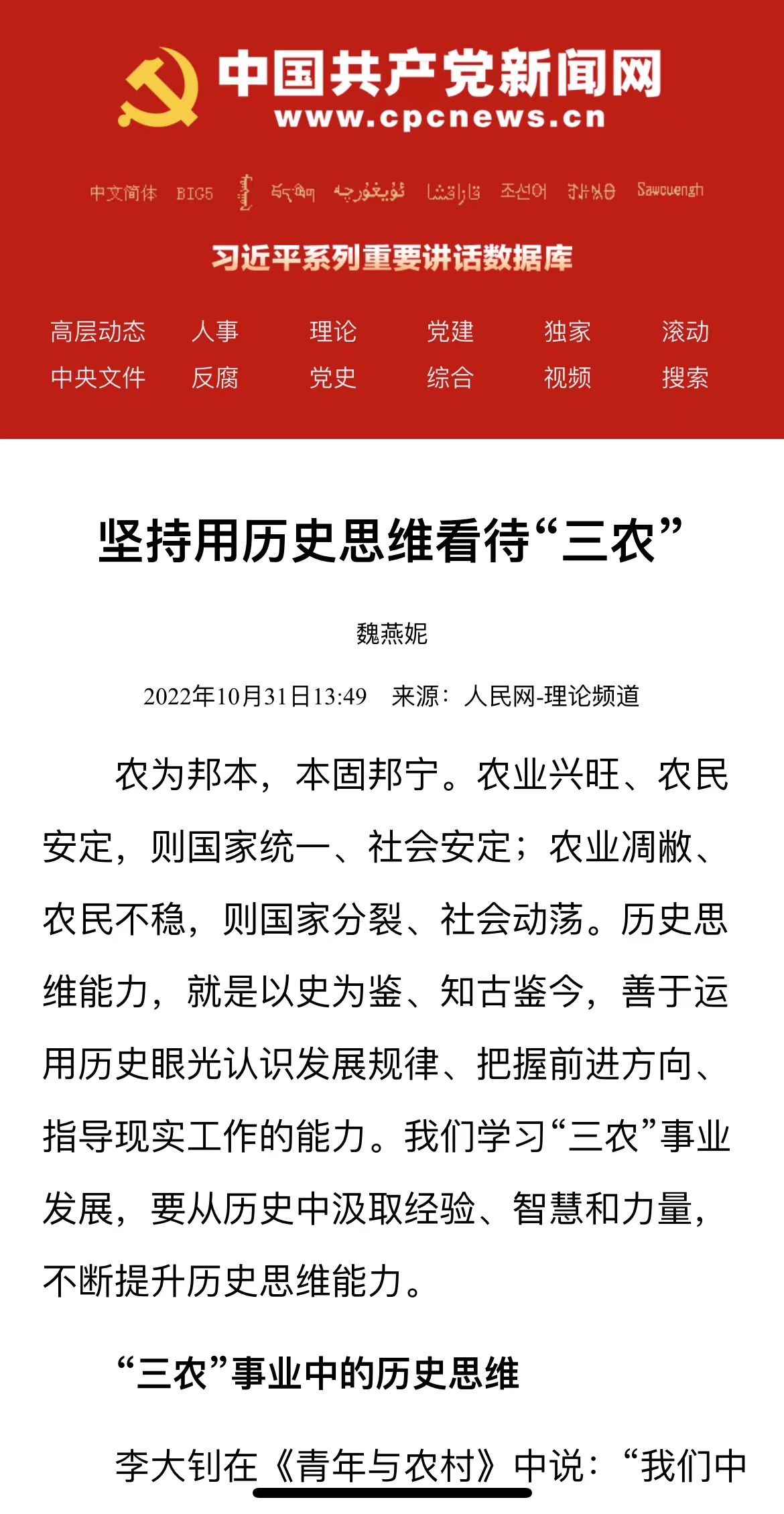 “三农”事业中的历史思维