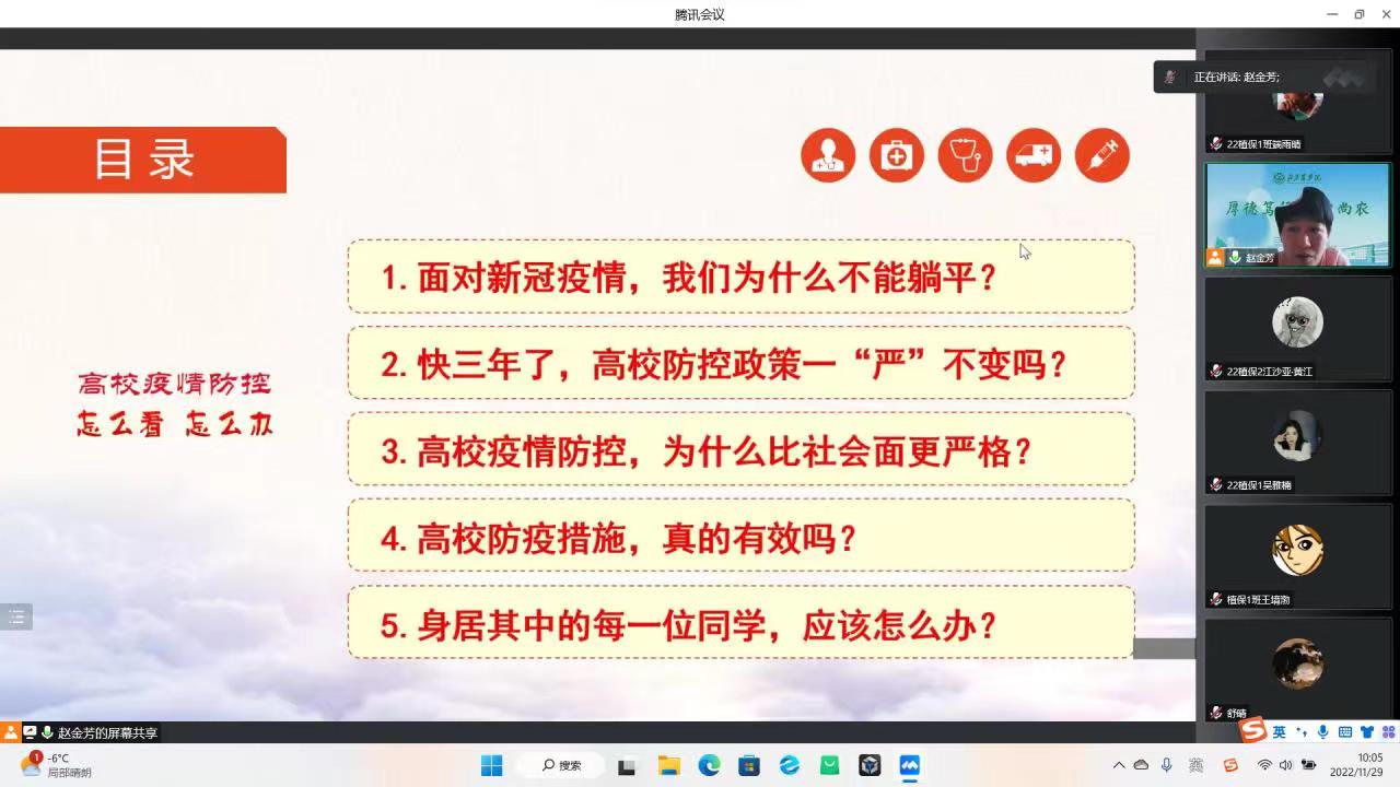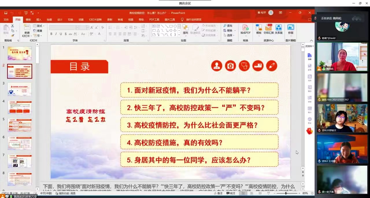 公司全体思政课教师参照统一课件,结合公司疫情防控实际,及时进行了疫情防控“大思政课”专题教学,围绕“高校疫情防控怎么看、怎么办?”这一主题,向员工讲清楚面对新冠疫情我们为什么不能躺平、高校疫情防控要怎么看、怎么办等重点知识,通过思政课加强对员工的思想引导和心理疏导,教育引导员工正确认识、理性看待,深刻认识“小我”与“大我”的关系,引导员工深刻认识当前严峻复杂的疫情防控形势,时刻紧绷疫情防控之弦,坚决克服麻痹思想、侥幸心理和松劲心态,毫不动摇地坚持和拥护“动态清零”总方针,在疫情防控中深刻感悟中国共产党领导和社会主义制度显著优势,自觉落实好个人防控责任,积极践行校园疫情防控行为规范,增强大局意识与担当精神。