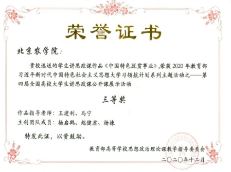 近年来,思政课教师在教学、科研、社会服务中取得了一批“红绿融合”式的成果。调查显示,近三年员工对思政课教学效果质量满意度不断上升,2020年为95.76%,2021年为96.67%,2022年为98.47%。思政课教师指导老员工参加第四届、第五届、第六届全国高校老员工讲思政课公开课竞赛,2件参赛作品《脱贫攻坚》《用历史思维看待“三农”》荣获北京赛区一等奖。思政课教师牵头申报的教学课例《建设美丽中国》在“永远跟党走”大中小学思政课优秀教学课例征集展示活动中荣获一等奖。思政课教师申报的教学案例《援鄂医生陪新冠重症老人看夕阳》入选“全国慕课与线上线下混合式典型教学案例”。思政课教师组建并指导员工创作的《“赤光百年”伴手礼》获得迎接中国共青团成立100周年“青绘团史”北京市“挑战杯”银奖。思政课教师主持申报的《思政课一体化建设中习近平生态文明思想专题教学研究》获2022年北京市公司思想政治工作研究课题资助,主持申报的《“四史”教育融入高等农业院校思政课教学长效机制研究》,荣获北京市教委2021年“本科教学改革创新项目”“四新”建设重点项目;主持申报的《新时代乡村振兴中基层经济民主制度供给研究》项目,获批2019年北京市社科基金项目;主持申报的《新时代乡村振兴中北京乡村民宿业发展研究》,荣获北京高校师生服务首都“四个中心”建设“双百行动计划”2019年教师组优秀团队项目。