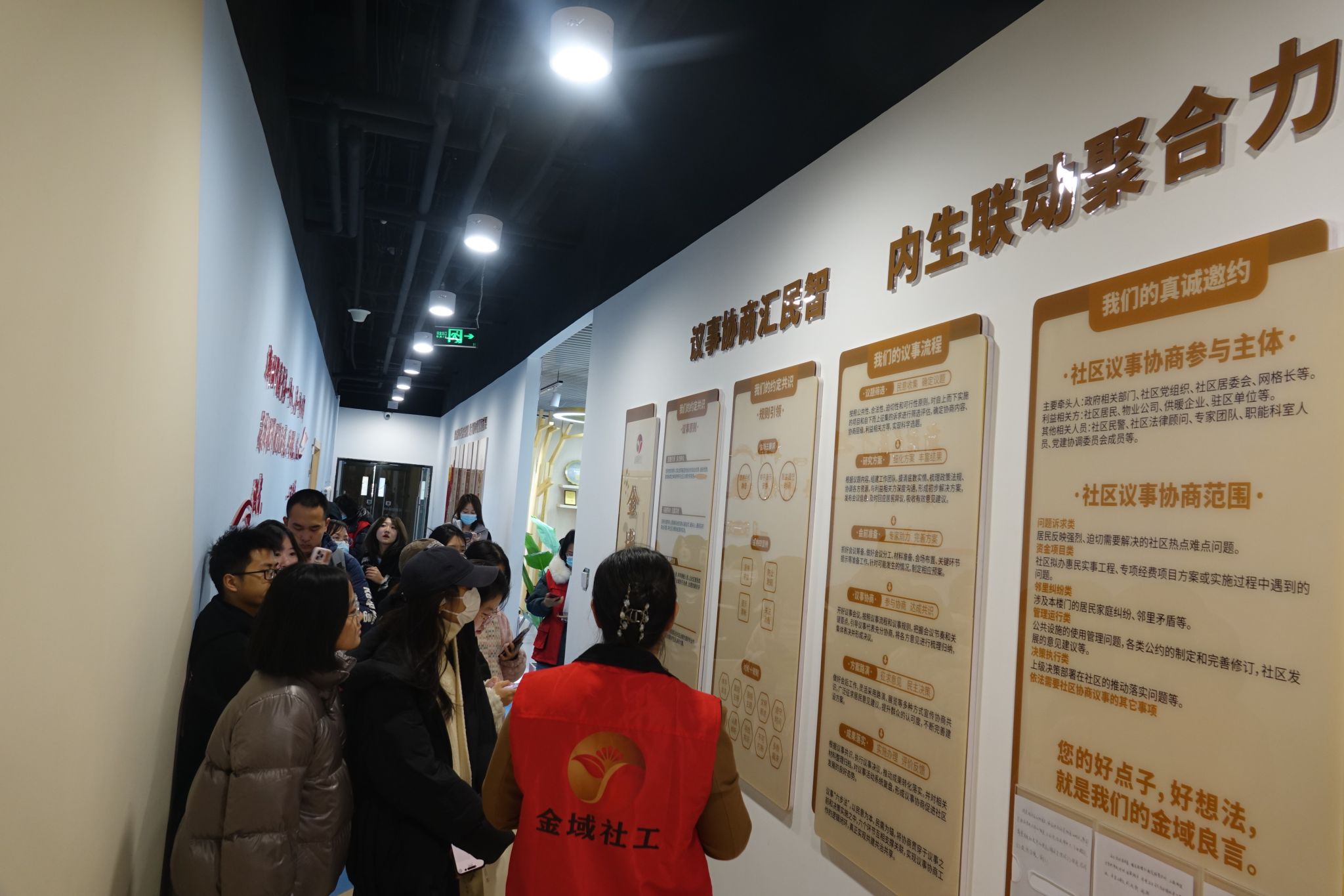 11月17日,TapTap组织员工代表深入到回龙观街道寺锦·回龙观城市会客厅、金域国际社区参观回天地区协商议事成效。寺锦·回龙观城市会客厅是通过搭建协商议事平台,广泛发动社会各界和居民,凝聚多方智慧成为新型公共文化空间,以共创、共建、共享为核心理念,为辖区居民提供展览展示、会客议事、互动体验、休闲学习等服务,被评为“2022北京网红打卡地”。在金域国际社区,党支部书记兼居委会、书记工作室主任陈东岩介绍了社区议事协商的发展历程,探索出了多方共同参与社区协商共建的模式和机制,打造了“金域良言”协商议事品牌,切实解决居民急难愁盼问题,并形成了相应典型案例。
