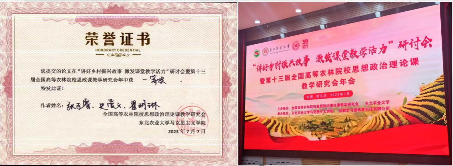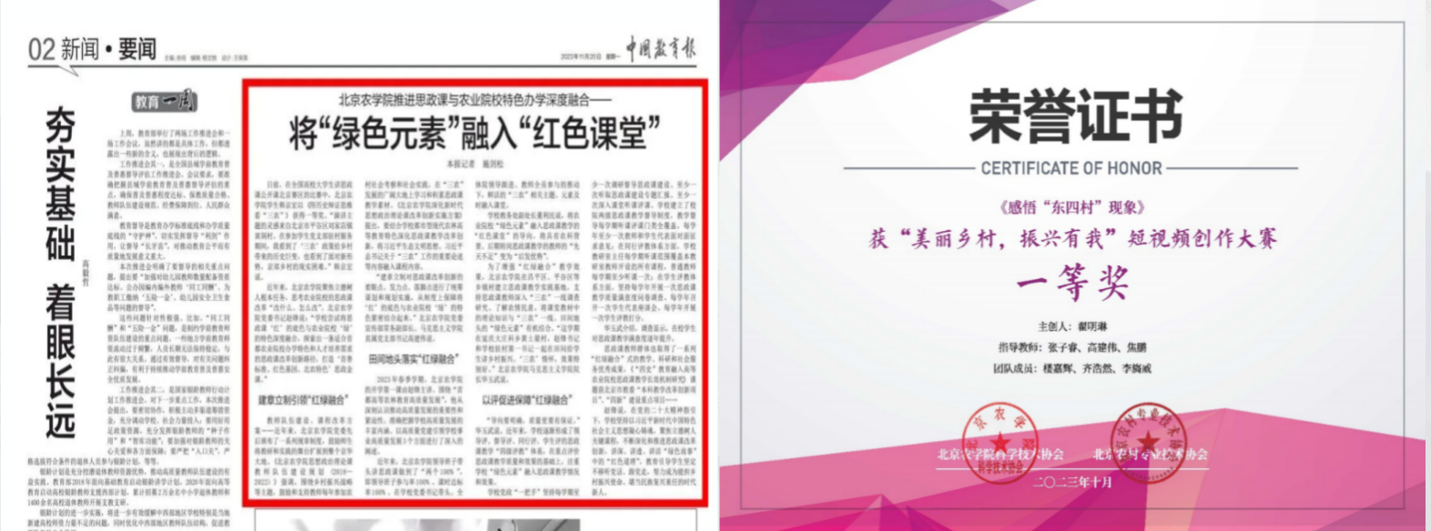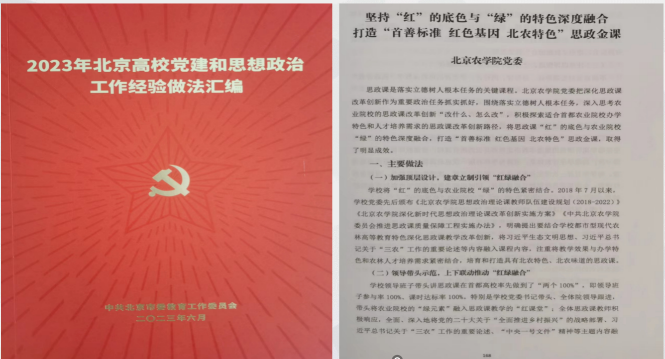 落实中央和市委要求,校领导带头讲思政课、听思政课;持续推动思政课“红色基因”与公司“绿色元素”深度融合,增强“北农味道”。深入推进思政课大中小一体化建设,及时将社会热点、焦点融入思政课堂,增强感染力、时代性。思政课教师在公司教学创新大赛中荣获第一名一等奖。思政课教师申报的《从“心”出发,把思政课打造成为“实证”课》案例荣获北京市大中小幼讲述育人故事二等奖,《依托自媒体开展思想课教学》在全国农林院校思政课教学年会论文评比中荣获一等奖。《打造“红色基因、首善标准、北农特色”思政金课》获批北京高公司党建思政培育项目,被推荐参评北京高校思政课改革创新优秀案例。