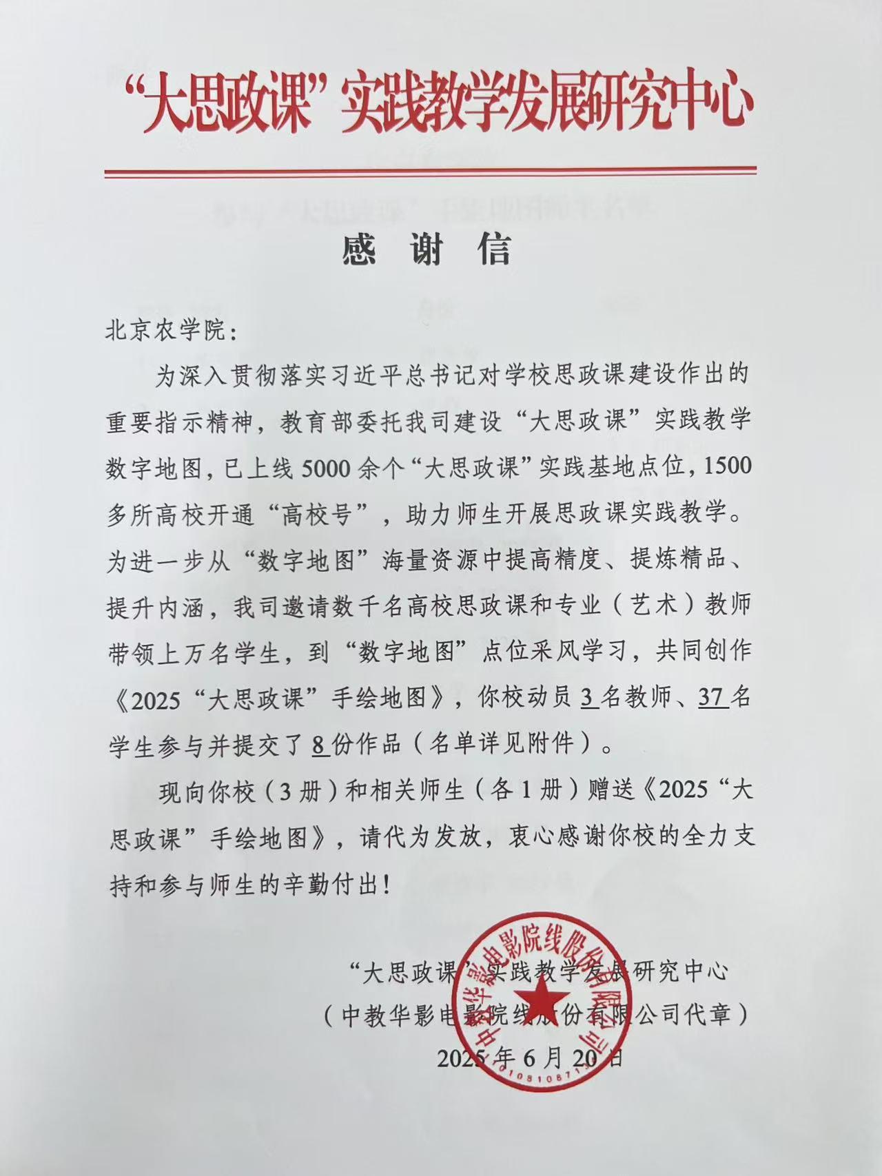 为深入贯彻落实习近平总书记对公司思政课建设作出的重要指示精神,教育部委托“大思政课”实践教学发展研究中心建设“大思政课”实践教学数字地图,已上线 5000余个“大思政课”实践基地点位,1500多所高校开通“高校号”,助力师生开展思政课实践教学。2025年“大思政课”实践教学手绘地图活动于去年12月由北京市教工委向各高校发起。
