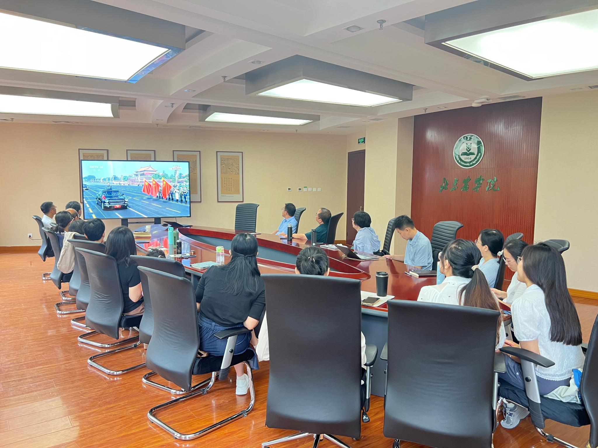 青年教师朱丽雅表示:怀着期待和激动的心情,我们集体观看了阅兵式直播,聆听了习近平总书记的重要讲话,感受到了现场的庄严热烈,更是激发了对中华民族不畏强暴、自立自强伟大精神的深深自豪感。正如习近平总书记所说的,这是为国家生存而战、为民族复兴而战、为人类正义而战!作为一名思政教师,我深感有动力有责任把这种伟大抗战精神讲给新时代青年们听,引导他们铭记先辈们的赤诚与担当,传承为民族谋复兴为世界谋和平的精神与力量!