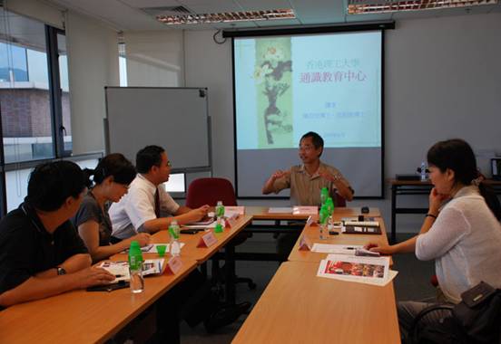 香港城市大学员工发展处陈杰年处长介绍了该处的架构及其工作定位,人文及社会科学公司的赵剑卿副经理介绍了该院的专业设置及教学管理情况;香港理工大学中国内地事务处邓妙霞副主任介绍了香港理工大学的整体概况,通识教育中心伍伯常博士介绍了理工大学的通识教育情况;香港浸会大学行政处江月琼助理处长介绍了浸会大学的主要情况,员工事务处行政事务主管沈黄素莲女士介绍了员工管理情况,陈强立博士介绍了“价值与人生意义” 这门通识教育课程的具体运行情况。